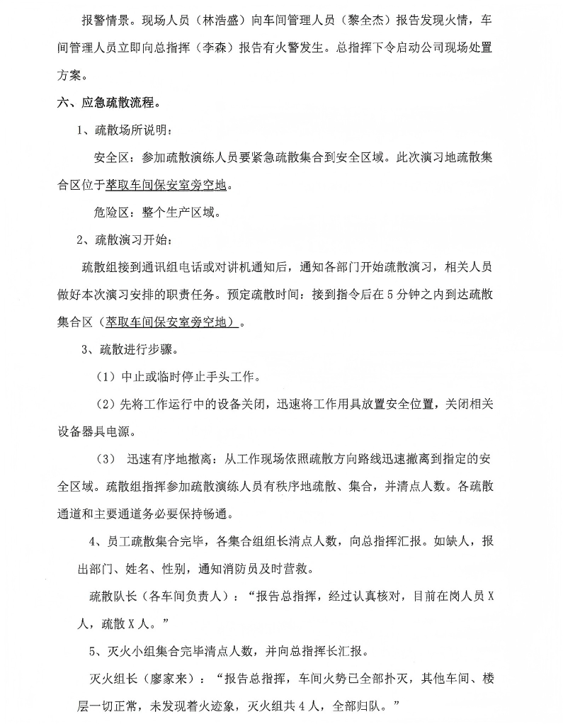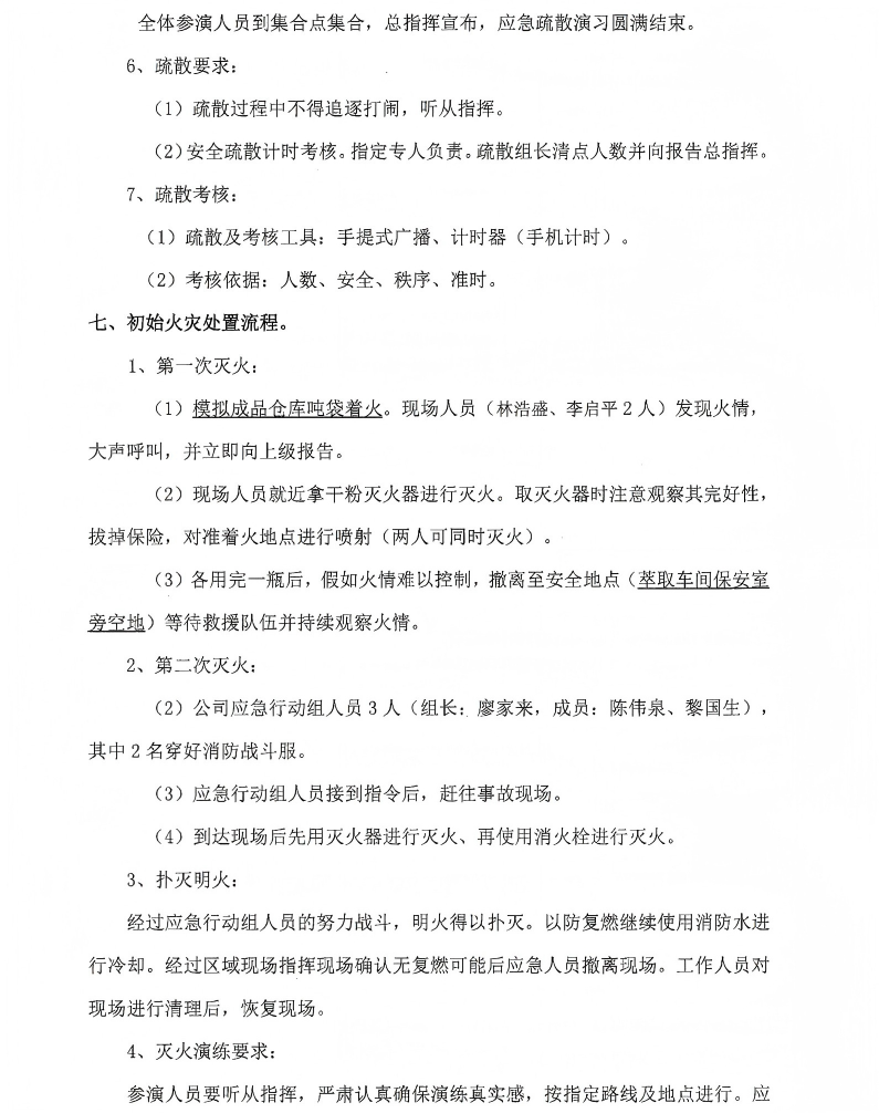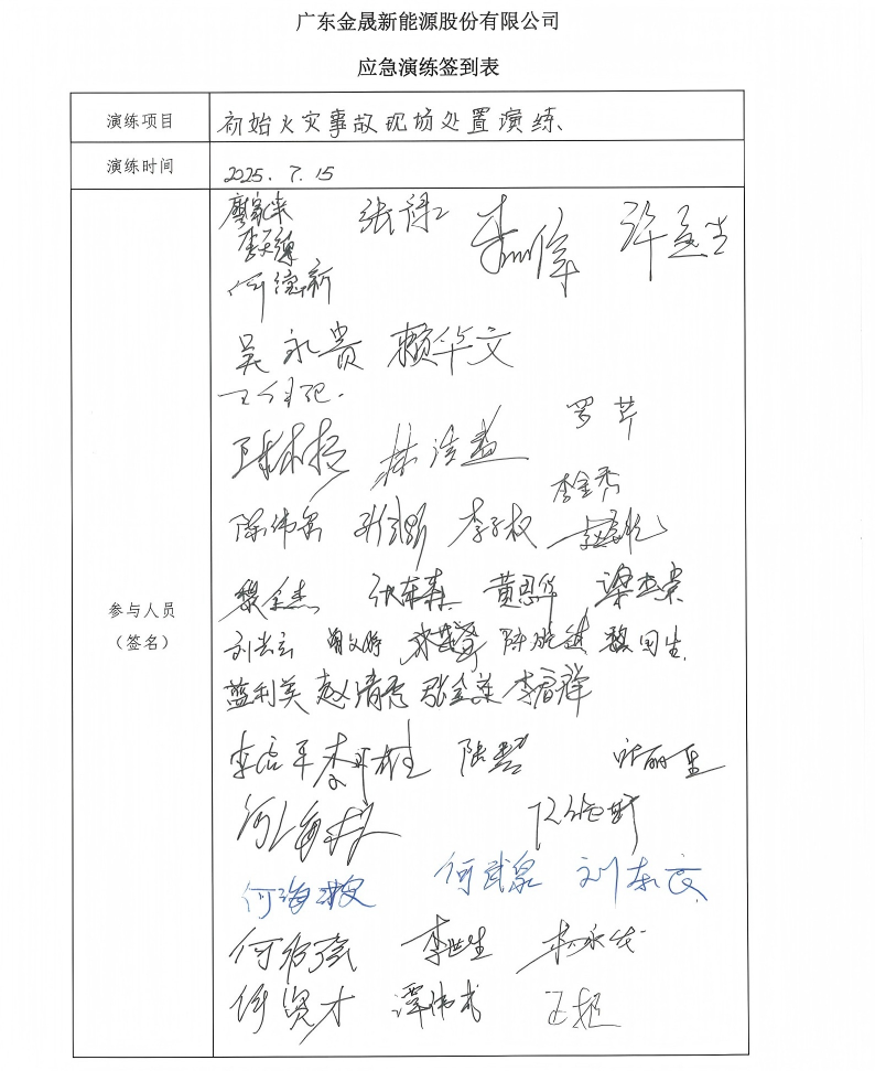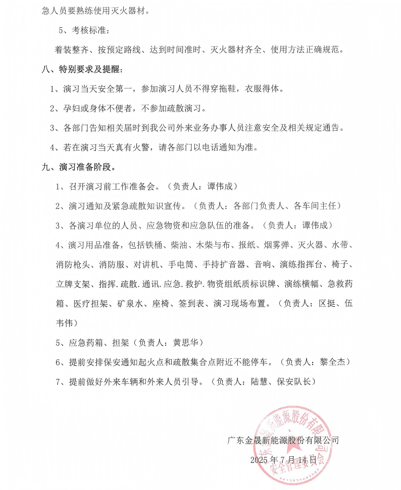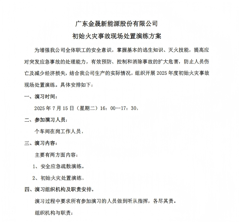 金晟新能2025年度初始火灾事故现场处置演练方案